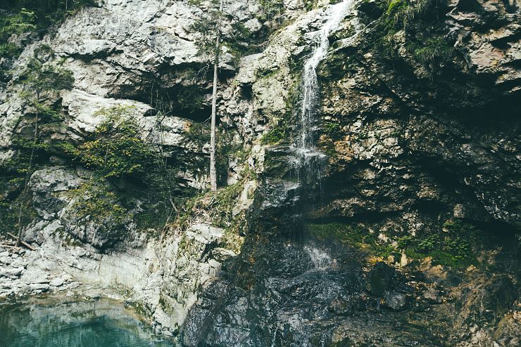 Der Weg zum Erler Wasserfall führt an diesem friedlichen Naturjuwel in Edelsteinfarben vorbei. Am Ziel angekommen, ist es mit der Ruhe vorerst vorüber: An diesem Kraftplatz fallen Wasser spektakulär in die Tiefe. Ein wunderbares Schauspiel der Natur.