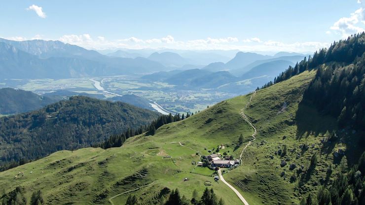 Varied mountain hike with wonderful views of the Chiemgau Alps and the Kaiser Mountains. The German/Austrian border runs over the Kranzhorn summit, which is why the climb is (unusually) rewarded with two peak crosses. The rustic Kranzhornalm is popular with climbers.